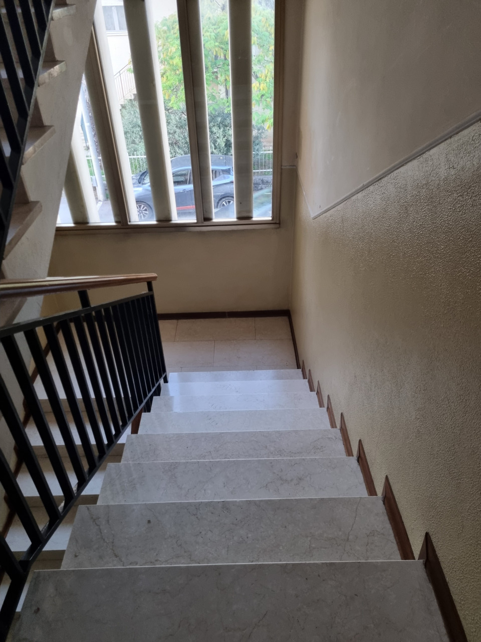 Entrando nell'immobile ci accoglie un classico ingresso che separa il vano cucina dalla zona salotto; quest’ultima è dotata di accesso ad un poggiolo lungo e luminoso. Proseguendo attraverso il disimpegno si accede alla zona notte composta da due camere da letto e ben illuminate, altro poggiolo e ad un comodo bagno finestrato completo di tutti i servizi necessari. Completa l'immobile il suo garage. Minime le spese condominiali, la gestione viene serenamente tra i proprietari.